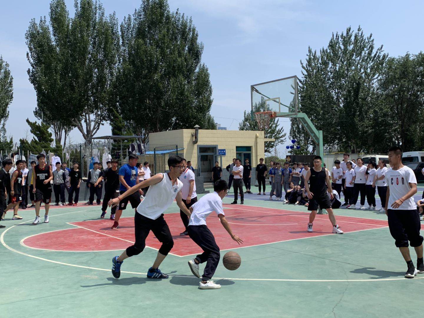 為進(jìn)一步增進(jìn)我校師生之間情感友誼的溝通與交流,展現(xiàn)我大重師生健康、和諧、積極進(jìn)取的精神風(fēng)貌,豐富師生的課余文化生活,2019年6月4日中午,我校在籃球場(chǎng)隆重舉行大重師生籃球友誼賽。