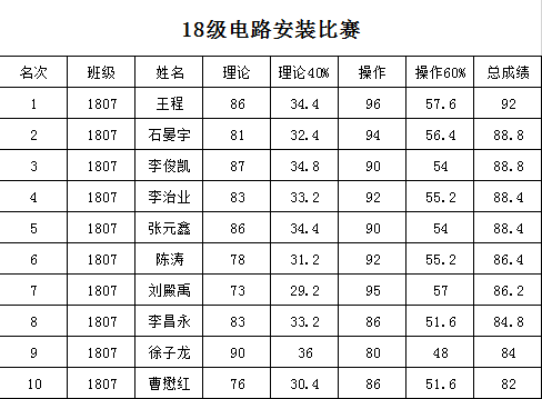 本次比賽按照市級(jí)技能比賽考核的標(biāo)準(zhǔn)進(jìn)行,分理論答題和現(xiàn)場(chǎng)操作兩部分。理論答題過(guò)程中學(xué)生需將電路圖的原理進(jìn)行分析說(shuō)明,實(shí)踐操作環(huán)節(jié),學(xué)生需在規(guī)定時(shí)間內(nèi)完成電路圖的現(xiàn)場(chǎng)連接。經(jīng)過(guò)50分鐘的比賽,全體參賽同學(xué)順利完成,最終王程、石晏宇、李俊凱獲得了本次比賽的冠亞季軍。