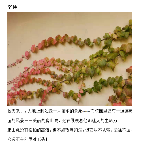 想要留住最美的瞬間,就一定要有發(fā)現(xiàn)和捕捉美的眼睛。大重技校的攝影比賽,就是要培養(yǎng)學(xué)生在日生活中尋找美、發(fā)現(xiàn)美,讓美好、陽(yáng)光灑滿校園,讓同學(xué)們沐浴在愛(ài)的環(huán)境下成長(zhǎng)。