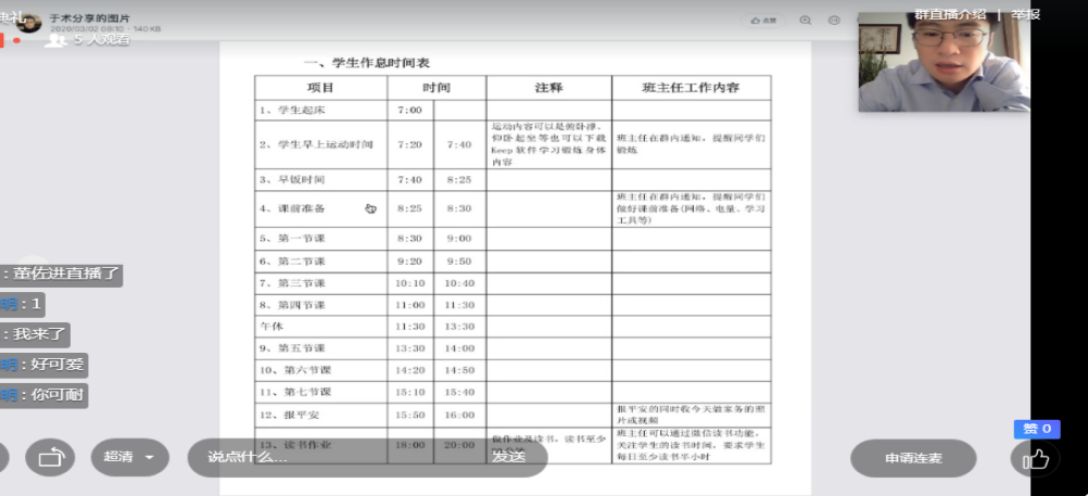 今天各班級正式開始了網(wǎng)絡直播、錄播課程的直播學習。雖然學習的地點不是學校的教室,班級的黑板被老師的電腦屏幕所代替。但是學生們的學習狀態(tài)一點也不差。早早的做好了準備工作。